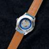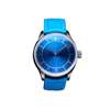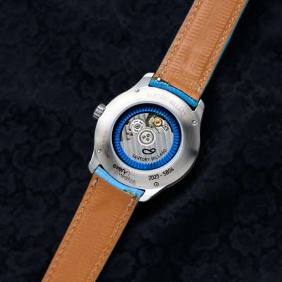 SB04 model, stainless steel case, La Joux-Perret G100 automatic movement, signed titanium laser-engraved blue dial with Maggie’s logo in repeat, stainless steel baton hour markers to a track, skeleton sword hands, crown with SB logo, on a blue leather strap with signed clasp, in box, with papers
