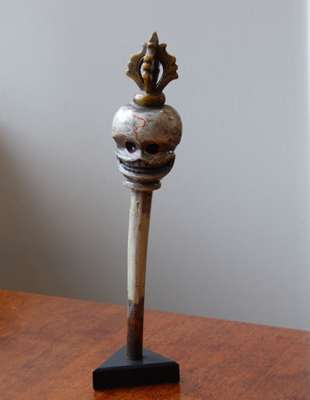 SILVERED METAL CEREMONIAL STAFF OR KHATVANGA