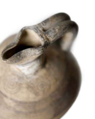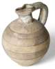 with scrolling loop handle and spiral decorated collar, 21cm high; and a Cypriot pottery bottle with a pair of holes on each side, 17cm high (2)