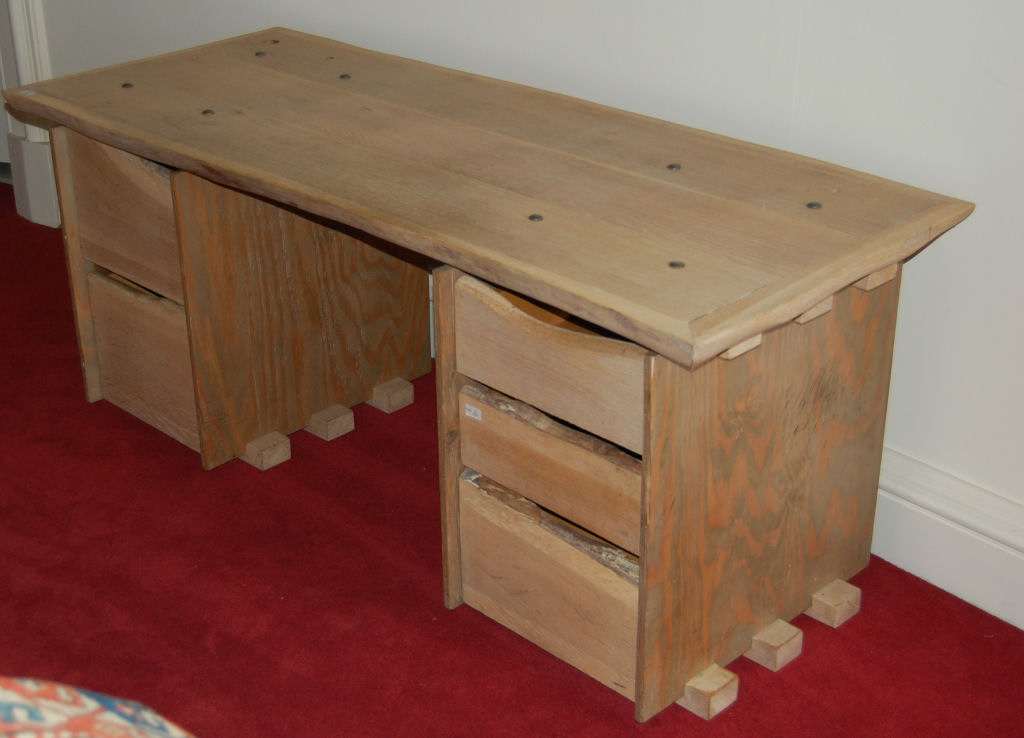 made by Ray McNeil, the rectangular top with naturalistically chamfered edge above twin pedestals of two drawers
