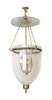 with cylindrical glass shade, circular glass smoke-shade and brass fittings, suspended by chains, later fitted for electricity