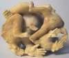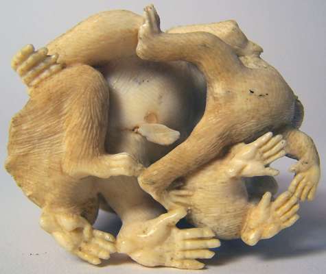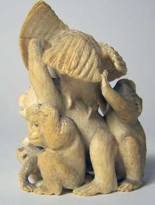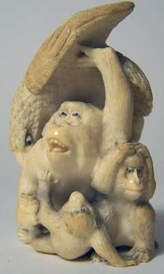 depicting an eagle attacking a monkey, which is shielding two baby monkeys underneath her, with a third attacking the eagle from behind, unsigned