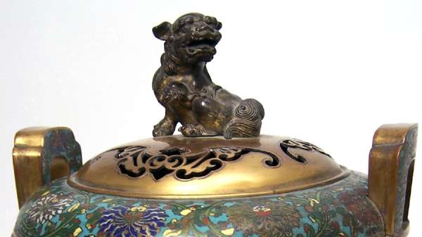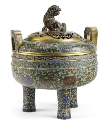 LARGE CHINESE CLOISSONÉ CENSER AND COVER