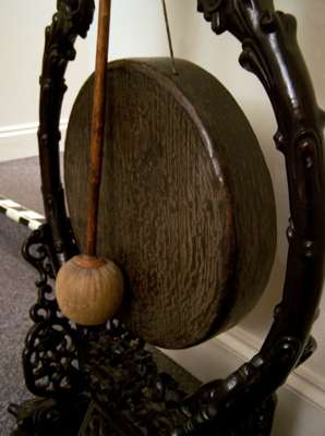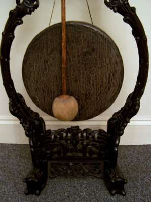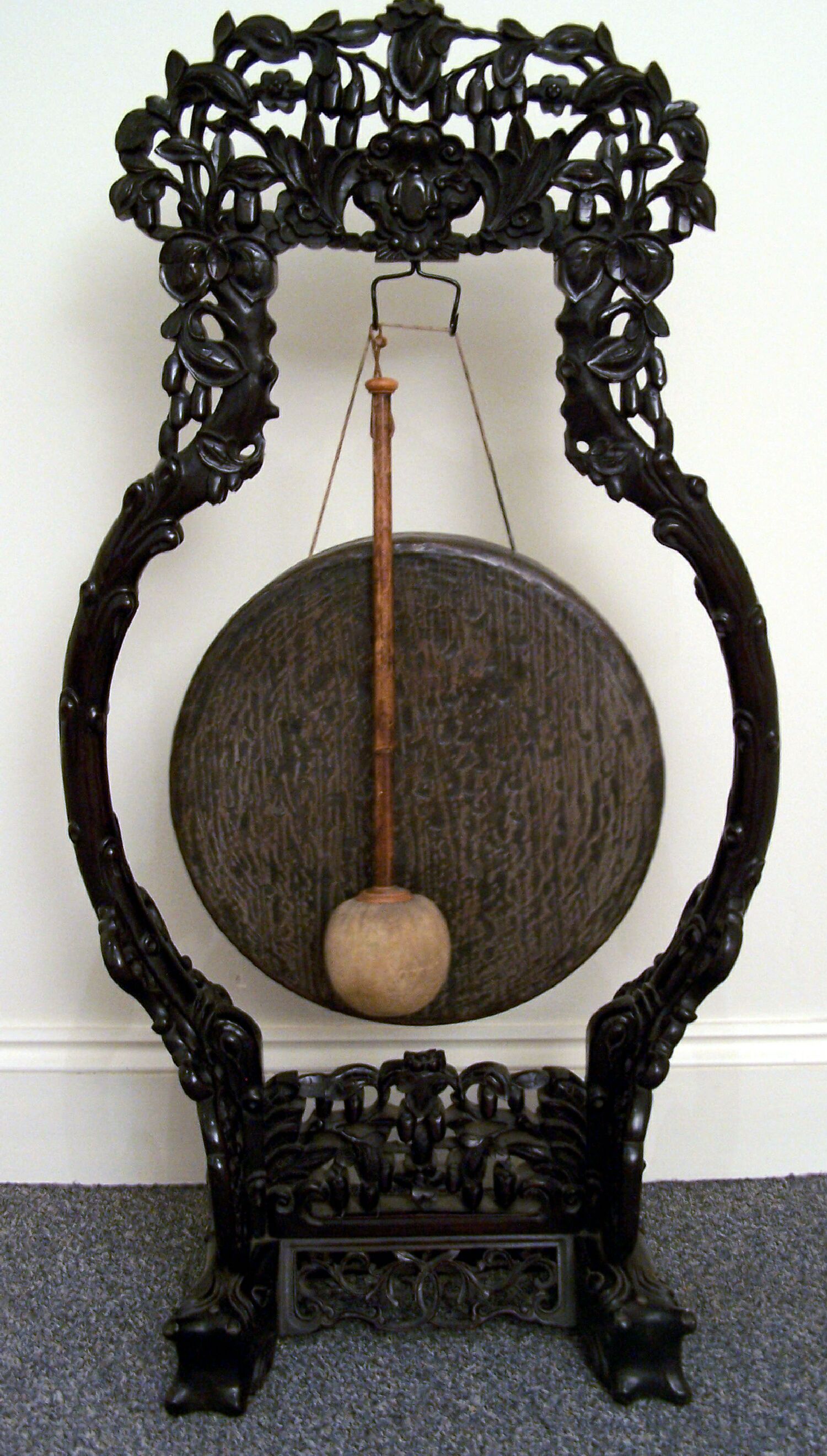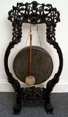 CHINESE BRONZE GONG WITH HARDWOOD STAND