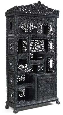 CHINESE CARVED HARDWOOD DISPLAY CABINET