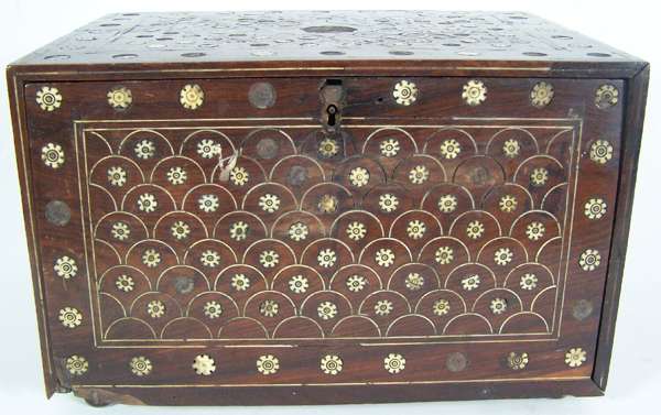 INDO-PORTUGUESE ROSEWOOD AND BONE INLAID TABLE CABINET
