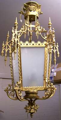 VICTORIAN GOTHIC BRASS HALL LANTERN