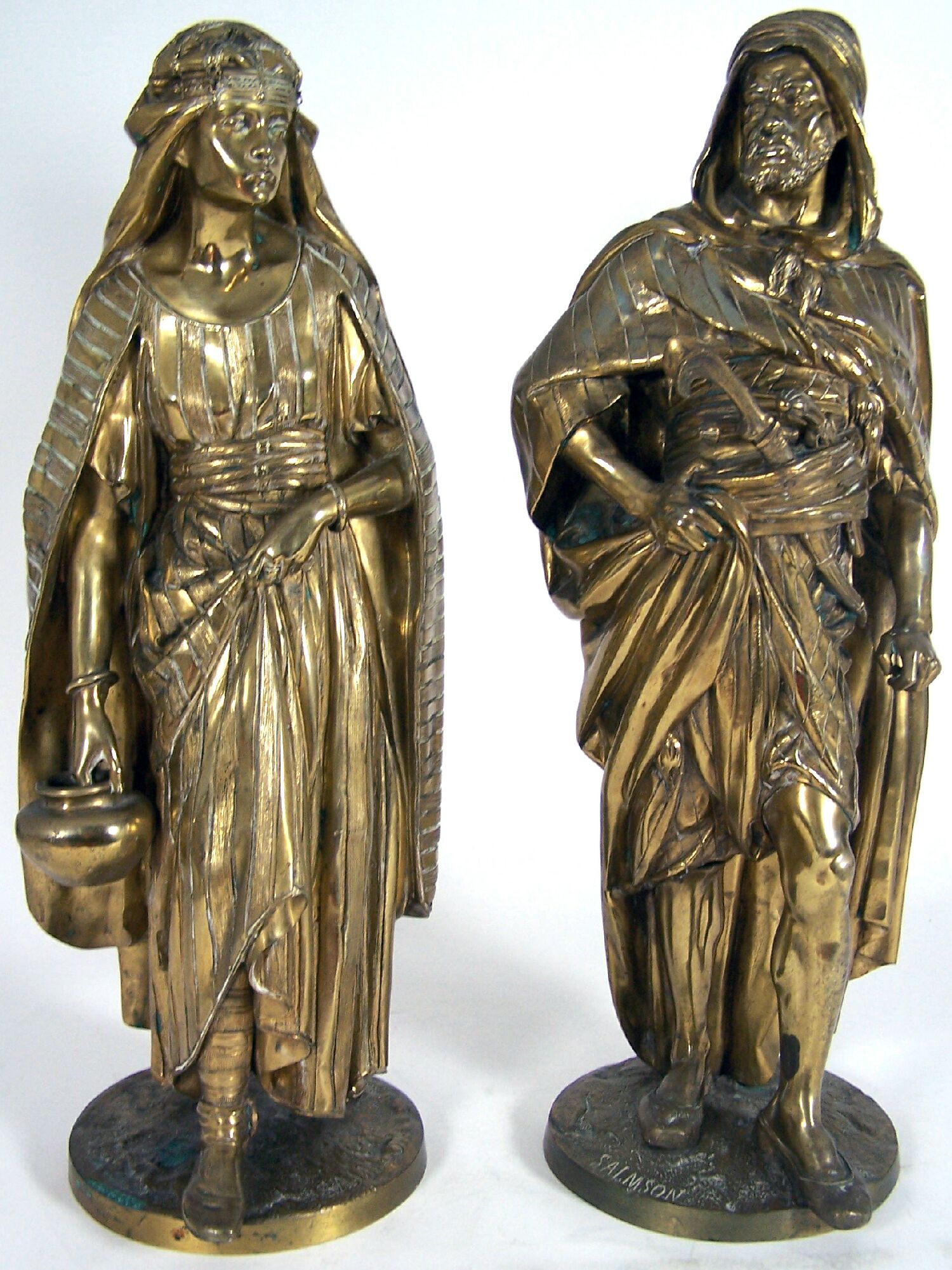 pair of gilt bronzes, signed SALMSON, raised on circular bases (2)