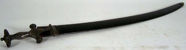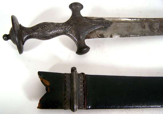 with inlaid hilt curved single edged blade (corroded), in original scabbard