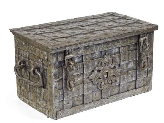 17TH CENTURY STYLE STEEL STRONGBOX