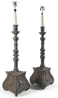 LARGE PAIR OF ITALIAN PAINTED PRICKET CANDLESTICKS