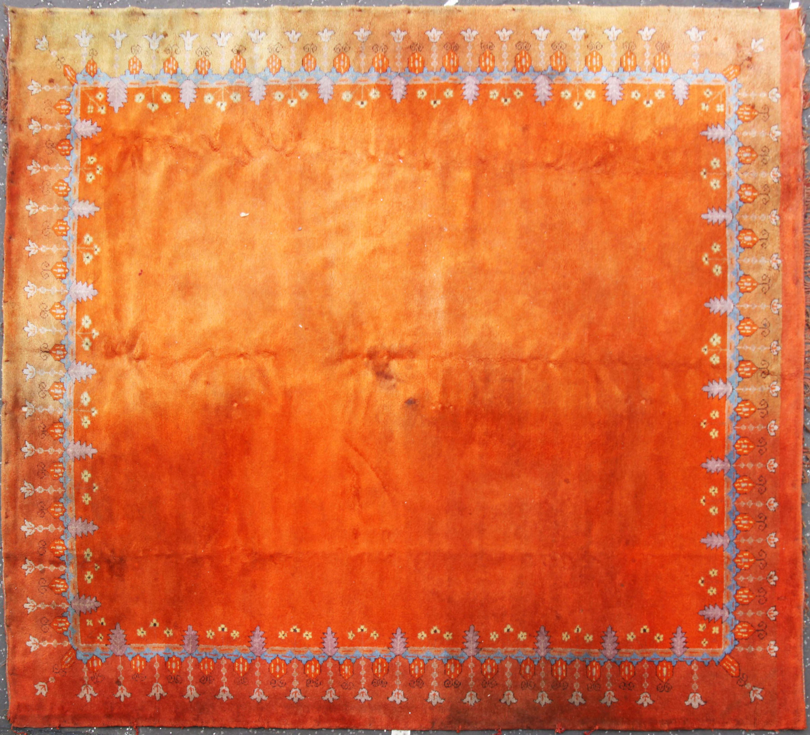 the plain orange field with orange stylised foliate border with blue band