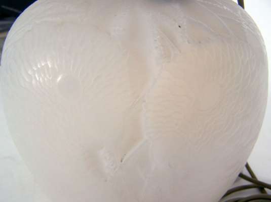 pattern 998, decorated with large parakeets, signed R Lalique, France (cracked base)