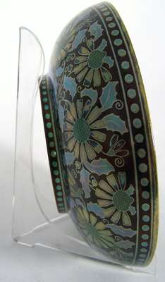 with semi-circle border above allover daisy and holly leaf decoration on a wine red ground, Zsolnay Pecs seal mark and impressed mark