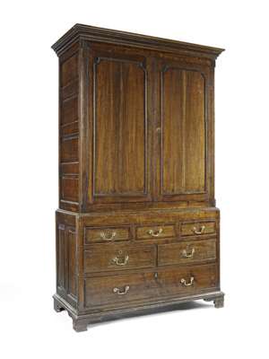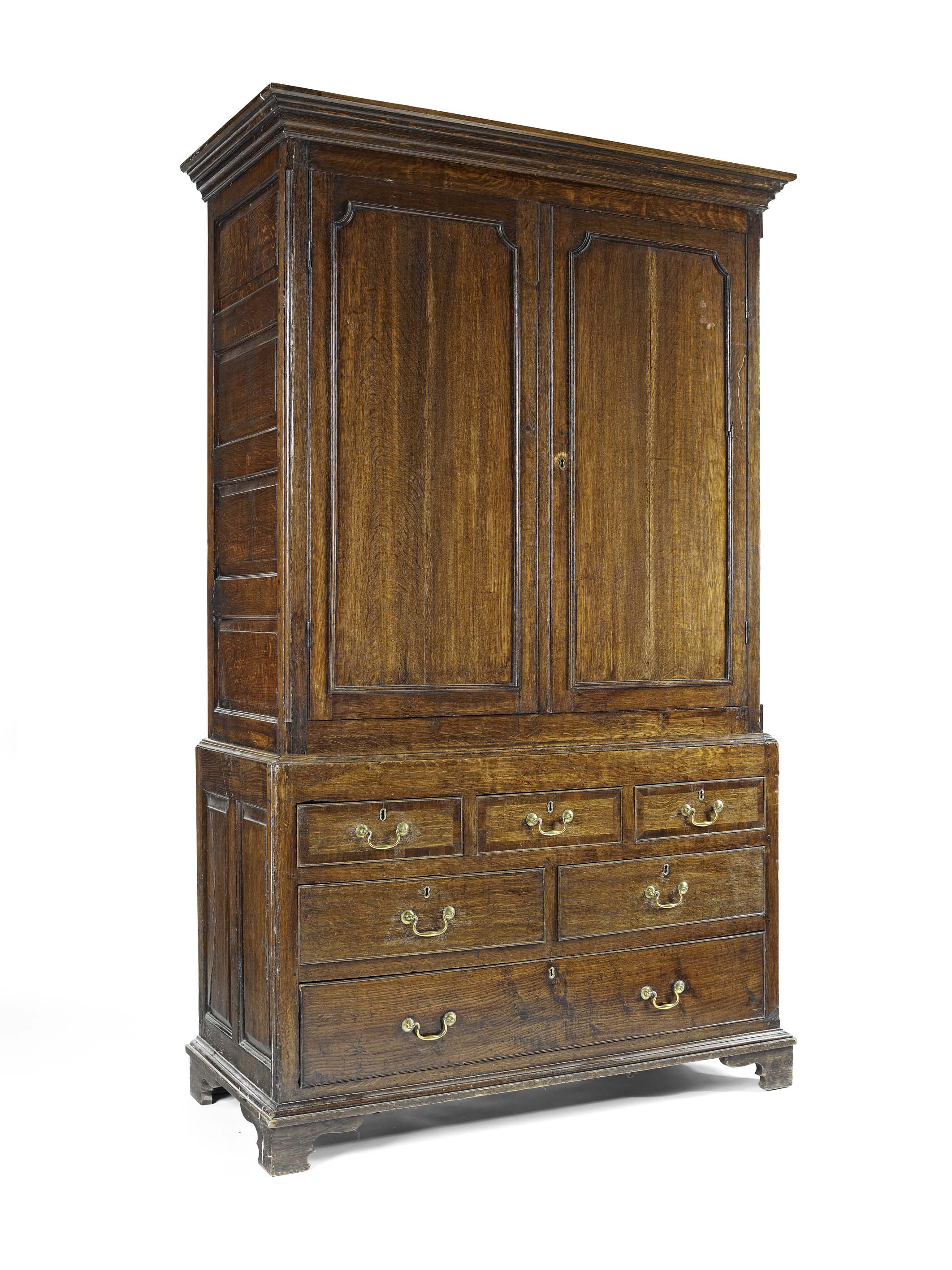 GEORGE III OAK AND MAHOGANY BANDED PRESS CUPBOARD