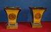 of square section, the flared sides decorated with various interior scenes, raised on lions paw feet and square bases (2)