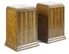 the square marble tops above one scalloped cupboard door enclosing shelves, raised on moulded plinth bases (2)