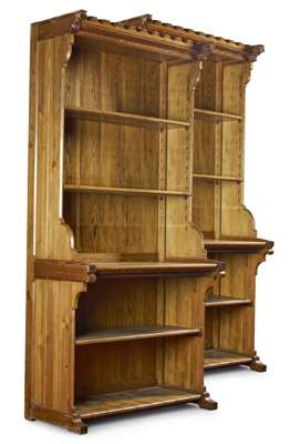 PAIR OF VICTORIAN GOTHIC PINE OPEN BOOKCASES