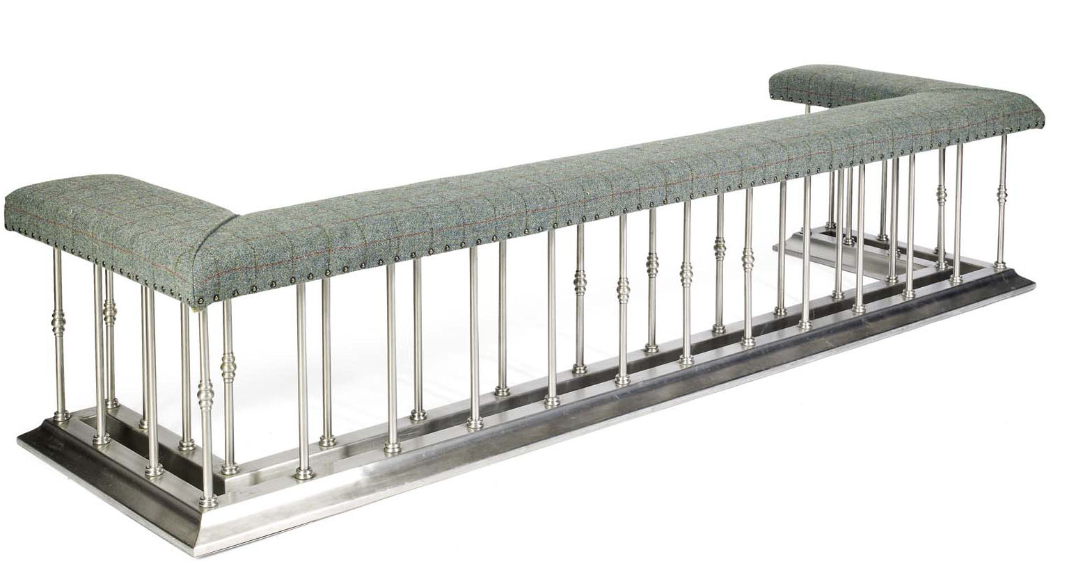 POLISHED STEEL AND UPHOLSTERED CLUB FENDER
