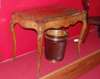 with gilt metal mounts, the serpentine shaped top above one frieze drawer, raised on square tapered cabriole legs ending in sabots