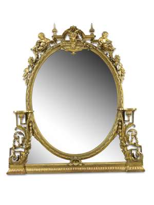 IMPRESSIVE VICTORIAN GILTWOOD AND GESSO OVERMANTEL MIRROR