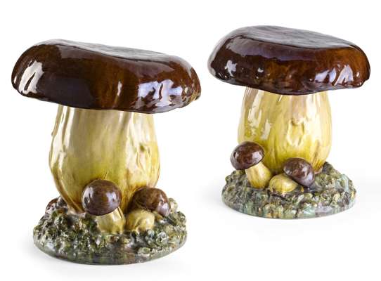 the glazed earthenware seats each modelled as a toadstool, printed and impressed marks no. 870 (2)