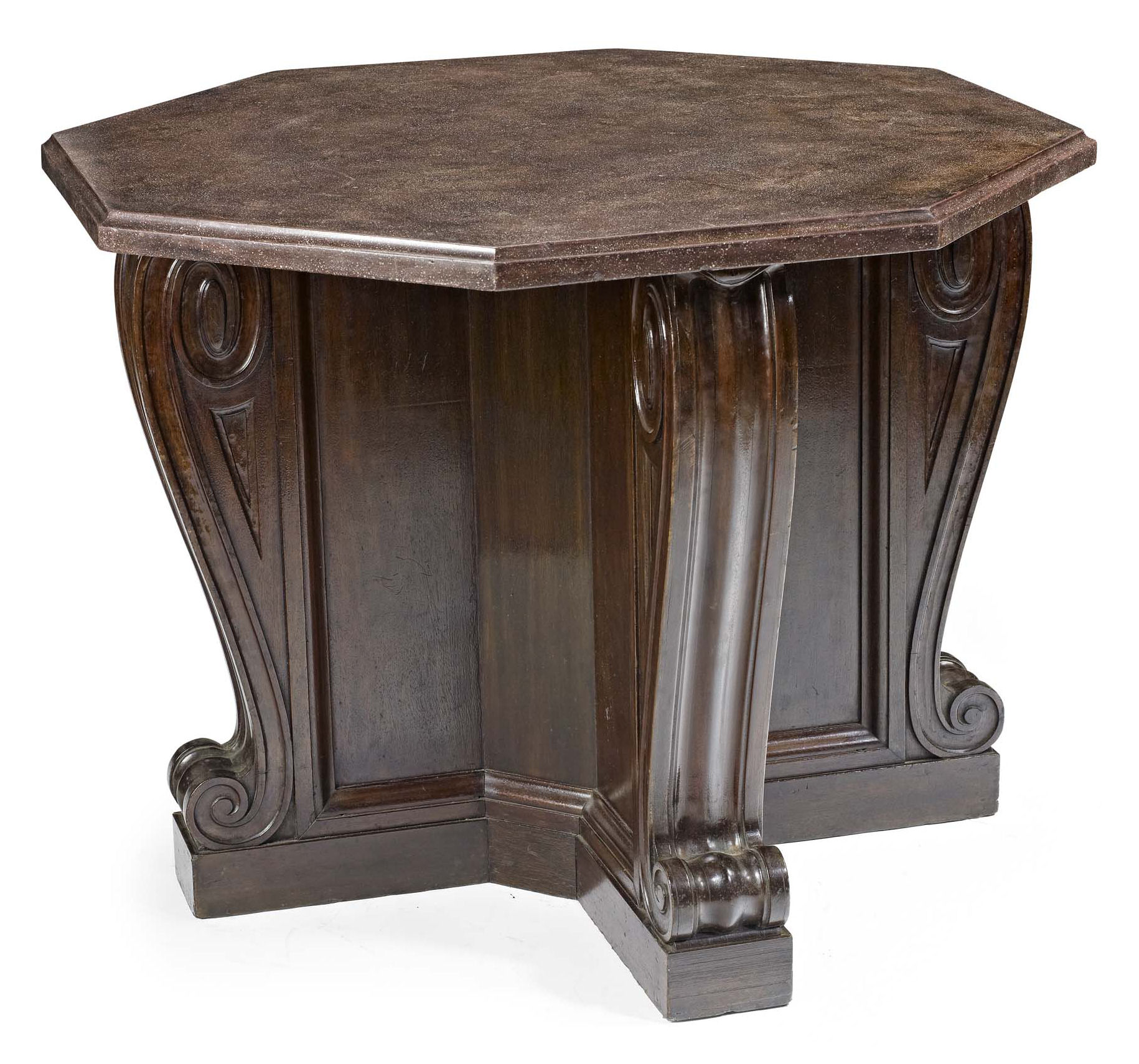 CONTINENTAL MAHOGANY AND SIMULATED PORPHYRY CENTRE TABLE