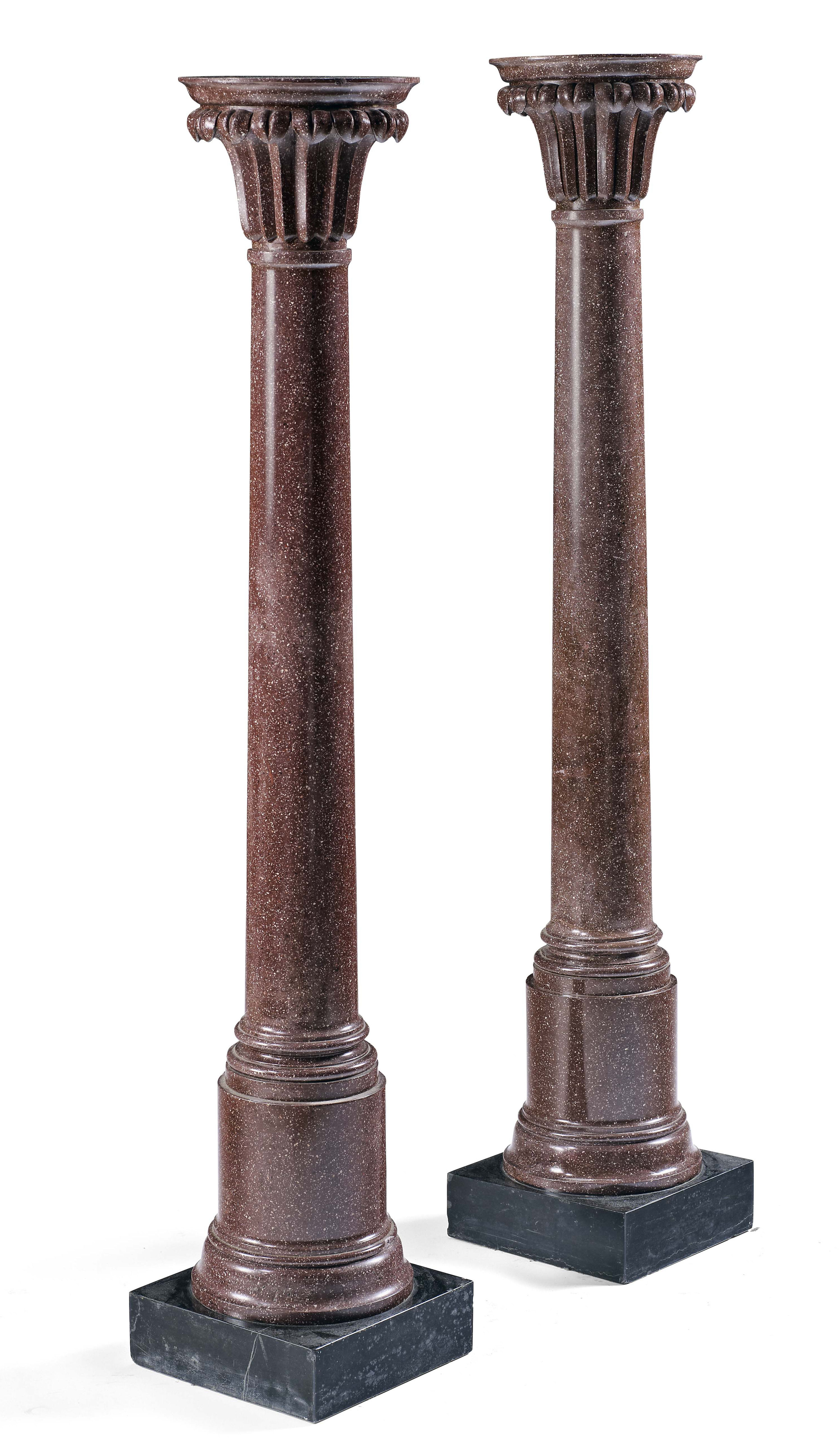 NEAR PAIR OF SCAGLIOLA PORPHYRY PEDESTALS