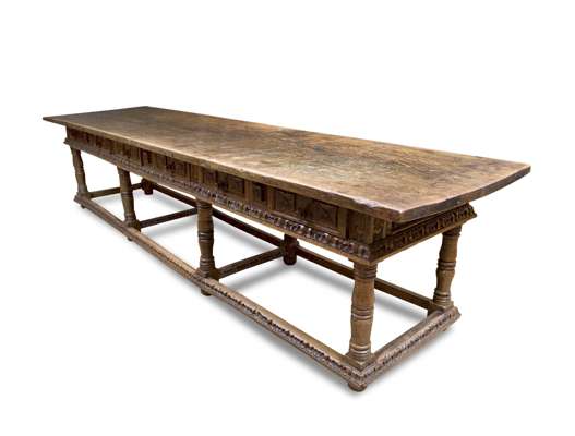 A GOOD SPANISH WALNUT REFECTORY TABLE