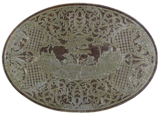 FRENCH PEWTER INALID OVAL PLAQUE