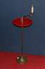 the height adjustable column centred by a dished red lacquer tier, raised on a spreading circular foot, mis-matched shades (2)