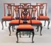 each with pierced vase splat and shaped top rail with paperscroll terminals, above drop-in seat and deep frieze on shaped cabriole front legs with pad feet (6)