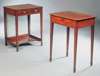 with boxwood stringing, the rectangular crossbanded top with moulded angles above frieze drawer and opposing dummy, on square section tapering legs with spade feet