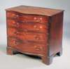 the shaped moulded top above four long graduated drawers enclosed by canted angles on shaped bracket feet