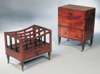 of rectangular outline, the slatted dividers with concave tops above a single panel drawer, raised on turned and tapering legs with brass caps and castors
