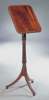 the adjustable lifting boxwood, satinwood and ebony strung and rosewood crossbanded top with rounded angles and reeded edge, fitted with retracting brass music rests, raised on telescopic reeded and ring turned pedestal and tripod base with reeded sabre legs and ball feet