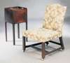 the square three quarter galleried top with pierced handles above single door with shaped panel and square section chamfered legs