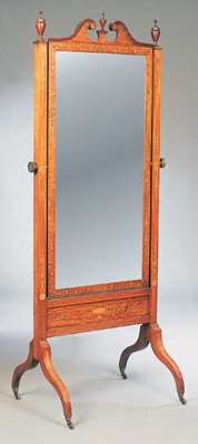A 19th century mahogany and marquetry inlaid cheval mirror