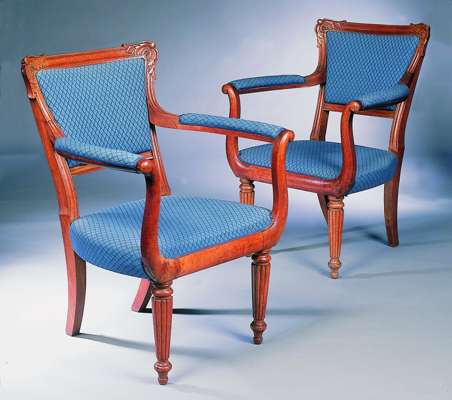 A pair of Scottish Regency oak open armchairs