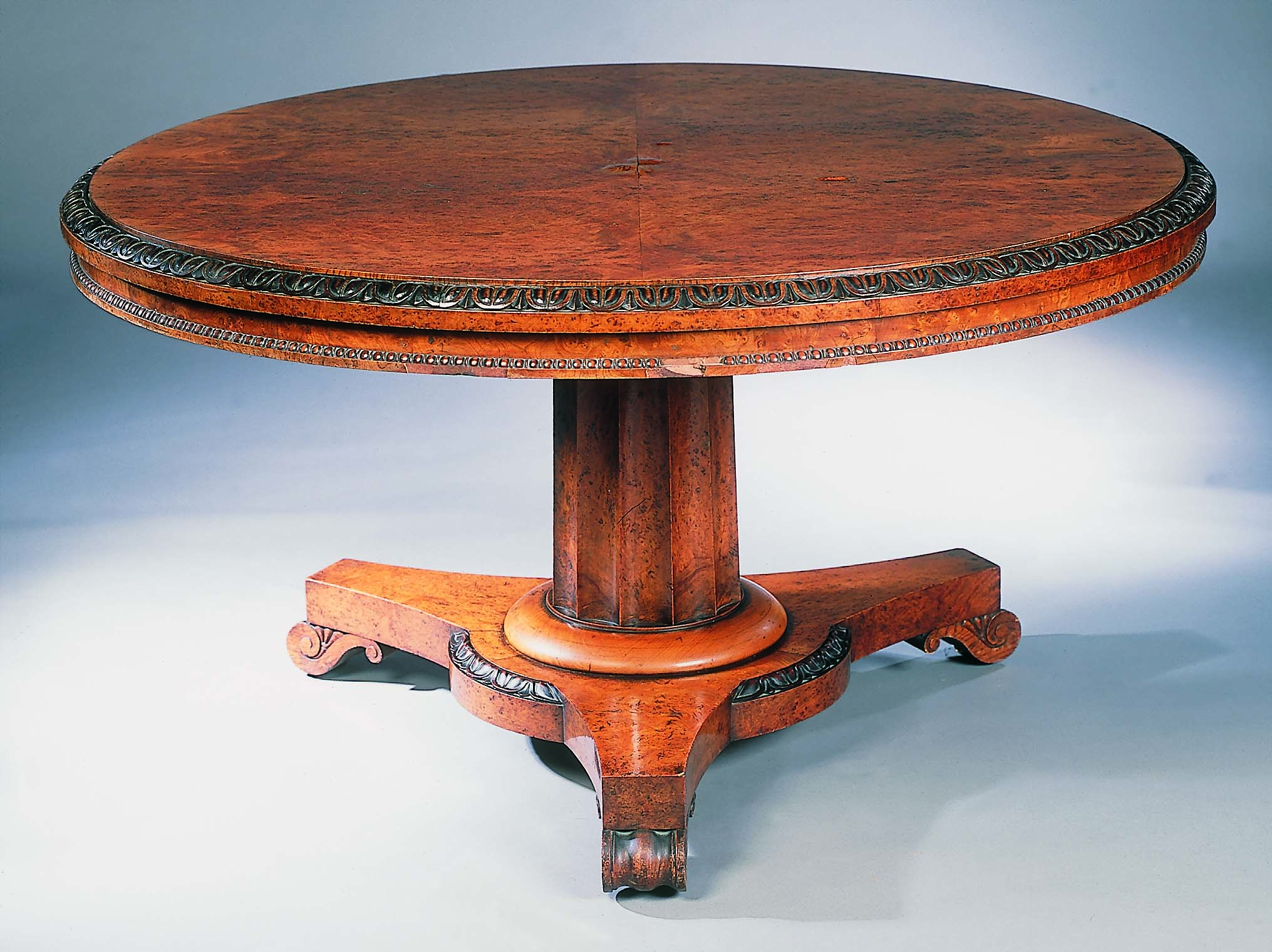 More comparable in size, and possibly design, was the table proposed by Trotter in 1813 for George Home's 'round Lava Top' which was to have been supported by a 'Massy Pillar rising from a pedestal and carved feet', estimated cost 17guineas. In the event a table of different design was supplied to Paxton, but this 'pillar and claw' table was perhaps similar in conception to that provided to the Speirs.