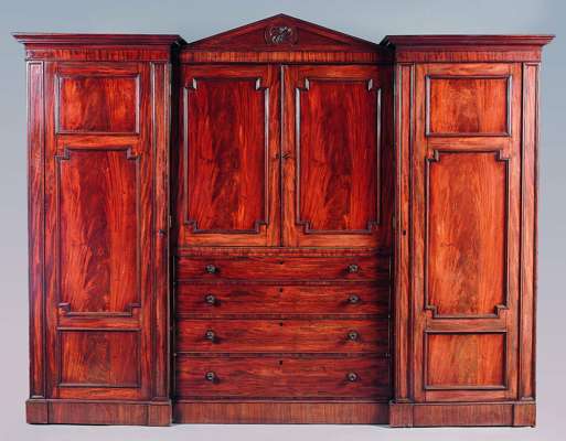 A Regency mahogany inverted breakfront wardrobe