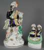 by a rocky plinth with thistles on base with a dog, 30cm, also a smaller group of a couple, the man wearing a sporran and his companion holding a basket of cakes (2)