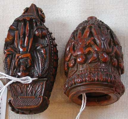 A Scottish 19th century Mauchlineware burr elm snuff mull