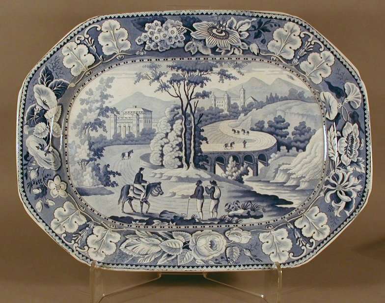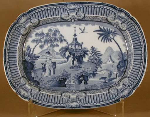 A John and William Ridgway blue printed 'Indian Temple' pattern oval tureen and cover,