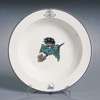 the cream ground with blue line border and central painted sword, feathered hat and tartan plaid, for the Scottish Regiment, the rim with oval painted sphinx opposing oval device with motto 'Nemo Me Impune Lacessit', impressed mark, late 18th century, comprising two circular soup plates, 24cm (one with rim chip on underside and tiny paint chips with back hanger), one meat plate, 25cm (rim chip and tiny paint chips and allover surface scratching), a large meat draining ashet , 47cm (allover scratching and glaze chips, foot with two small, three large and one very large chips) another smaller ashet, 45cm (stained surface scratching and glaze chips)