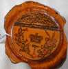 of shaped circular form, the hinged split sycamore lid decorated in penwork with the crown, thistle and rose