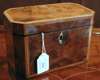 with boxwood and ebony stringing and tulipwood crossbanding, the hinged rectangular top with canted angles enclosing two compartments with corresponding lids
