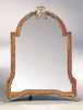 the arched frame with stepped lugged lower corners, egg and dart, and leaf, moulded slips, surmounted crest with ducal coronet and floral swags, on paw feet, with pierced interlaced strut support
