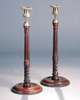 each with leaf cast brass nozzle on lifting adjustable rod, the stick of turned and fluted columnar form with spirally fluted base and turned saucer foot