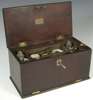 of rectangular form, the hinged top above hinged fall enclosing an interior fitted with bottles and medical supplies